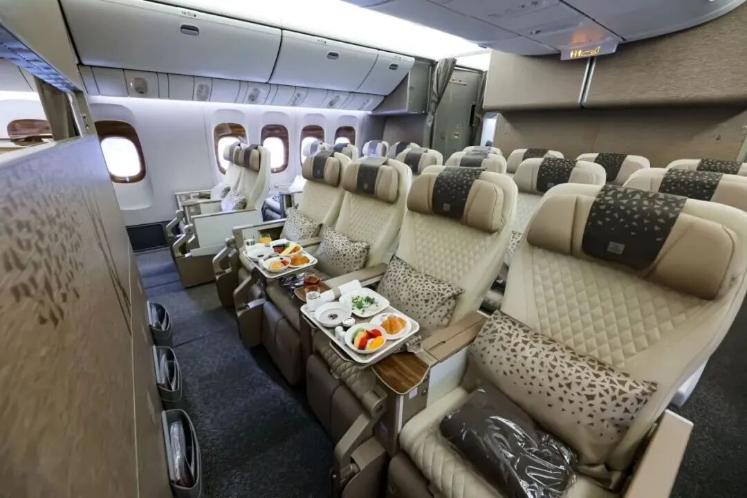 ✅ 商务舱:1-2-1错落式布局,香槟色调内饰,可180度平躺,尊享奔驰E级接送服务(单程80公里)。